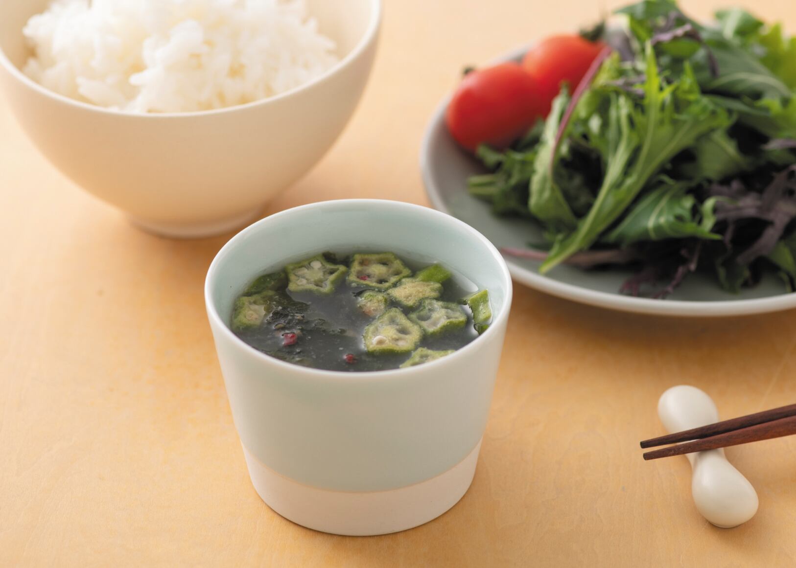 【送料無料】 栄養価の高いオクラ(福井県産)を美味しいスープにしました。 オクラのとろりとした食感をお楽しみください (3食入/袋) 味は3種類 ・中華 × 2袋 ・梅オクラとワカメの鰹だし × 2袋 ・カレー × 2袋