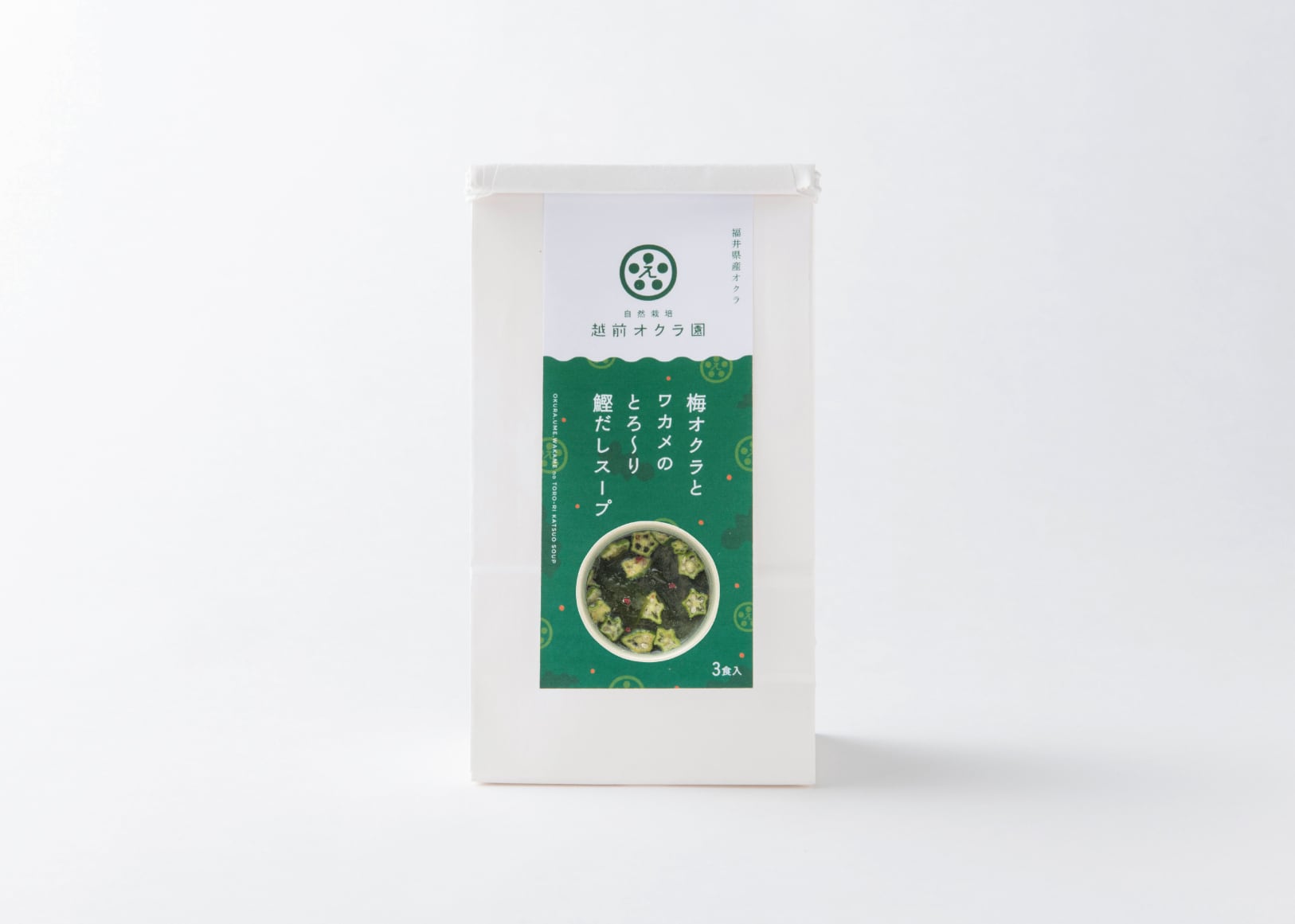 【送料無料】 ★ビタミン、ミネラル、食物繊維などの栄養素の高いオクラをスープにしました★ 越前オクラ園で収穫される自然栽培のオクラを使ったスープ3味の中で 梅オクラとワカメの鰹だし味だけを10袋セットにしました。 粉末にしたオクラのとろりとした食感がクセになりますよ ^^) _旦~~ 1袋3食入り ✖ 10袋 ※お届けはご注文後10日前後となりますのでご了承下さい
